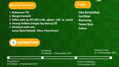 Mewarta.Com, Makassar-LDF al Uswah FTK UIN Alauddin Makassar kembali mengadakan Open Recruitmen dengan nama SMILE…